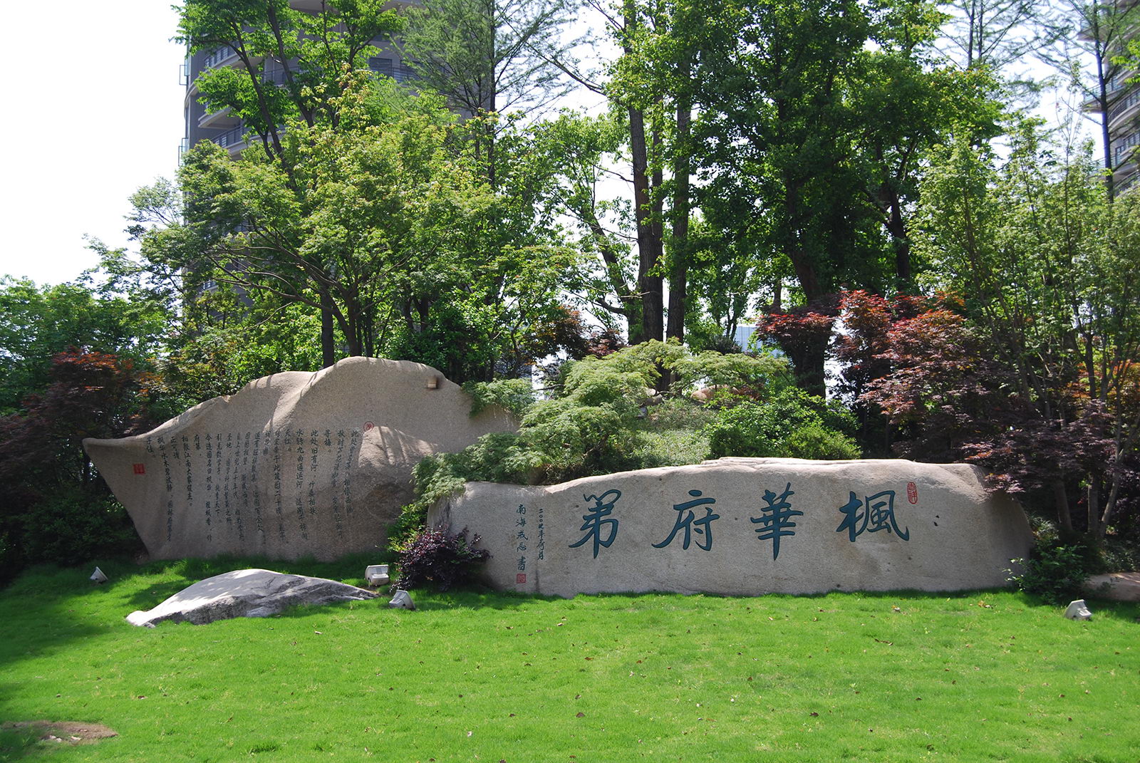 整個小區的景觀設計在當時借鑒日本人居設計思想,樓盤的總體定位即以高雅、藝術、自然共生為理念,融入精巧設計,對景觀細節進行了一一呈現,疊石理水,以“水岸共生、居隱書香”為主題,構筑蘊涵傳統園林的空間布局和現代園林精華的景觀環境。