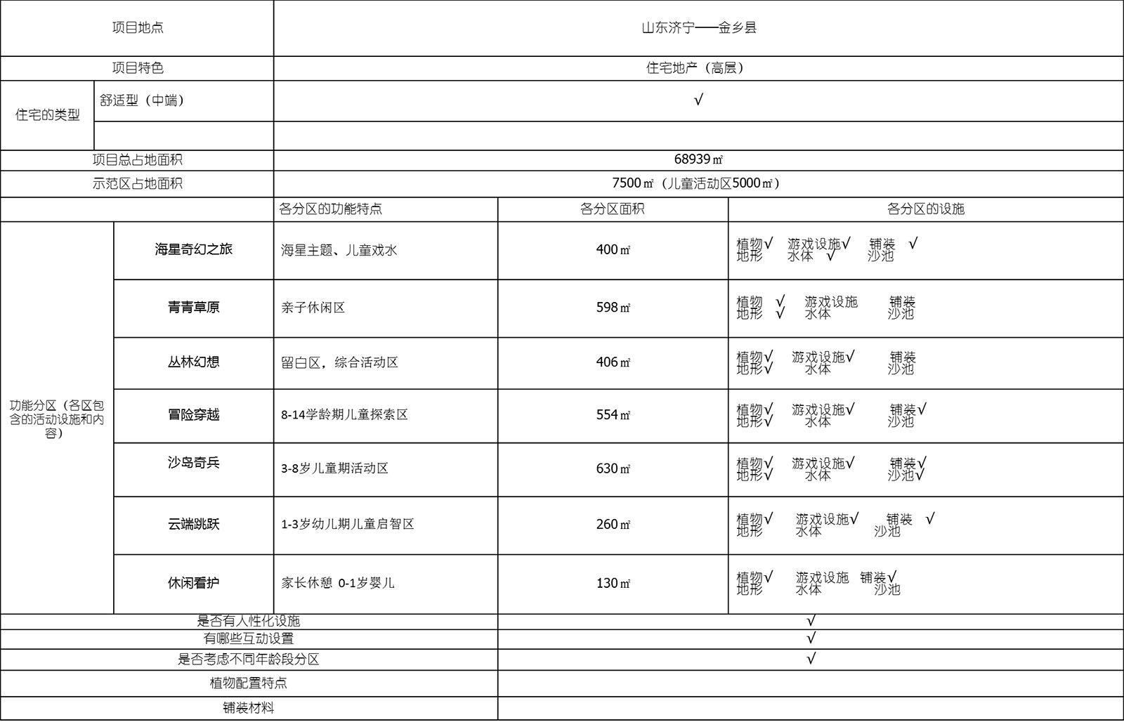 將兒童各功能區活動條件等各項數據匯總,建立星空住宅項目開發標準化、產品化體系。