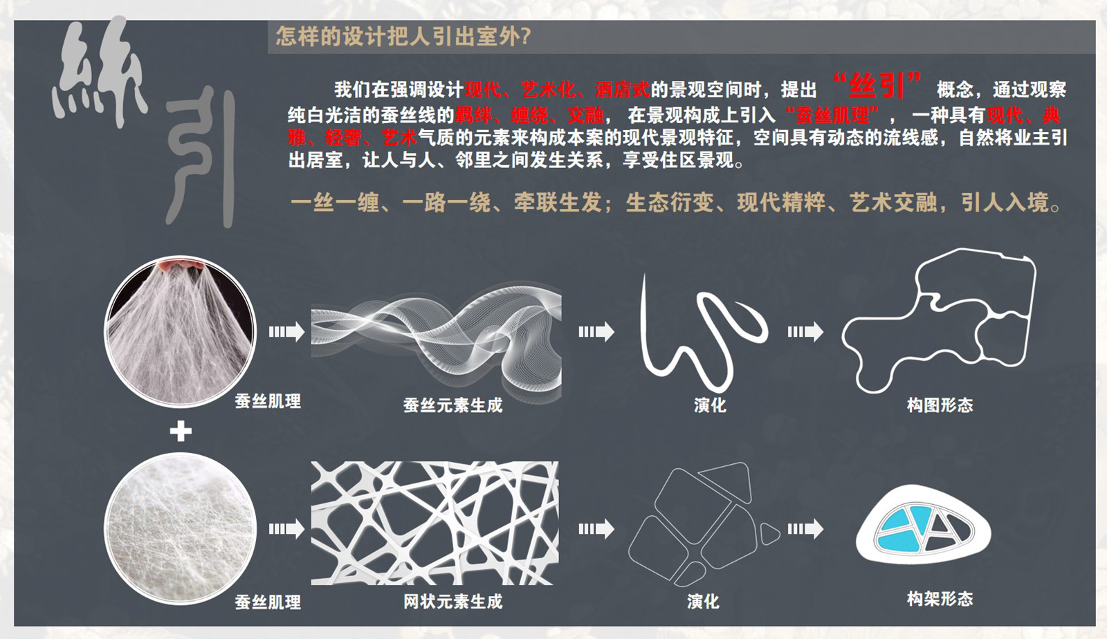 陽光傾城,傾倒于陽光尚品的純雅靜美;絲引秀川,引導業主走出居室,享受生態自然與健康人文的交融