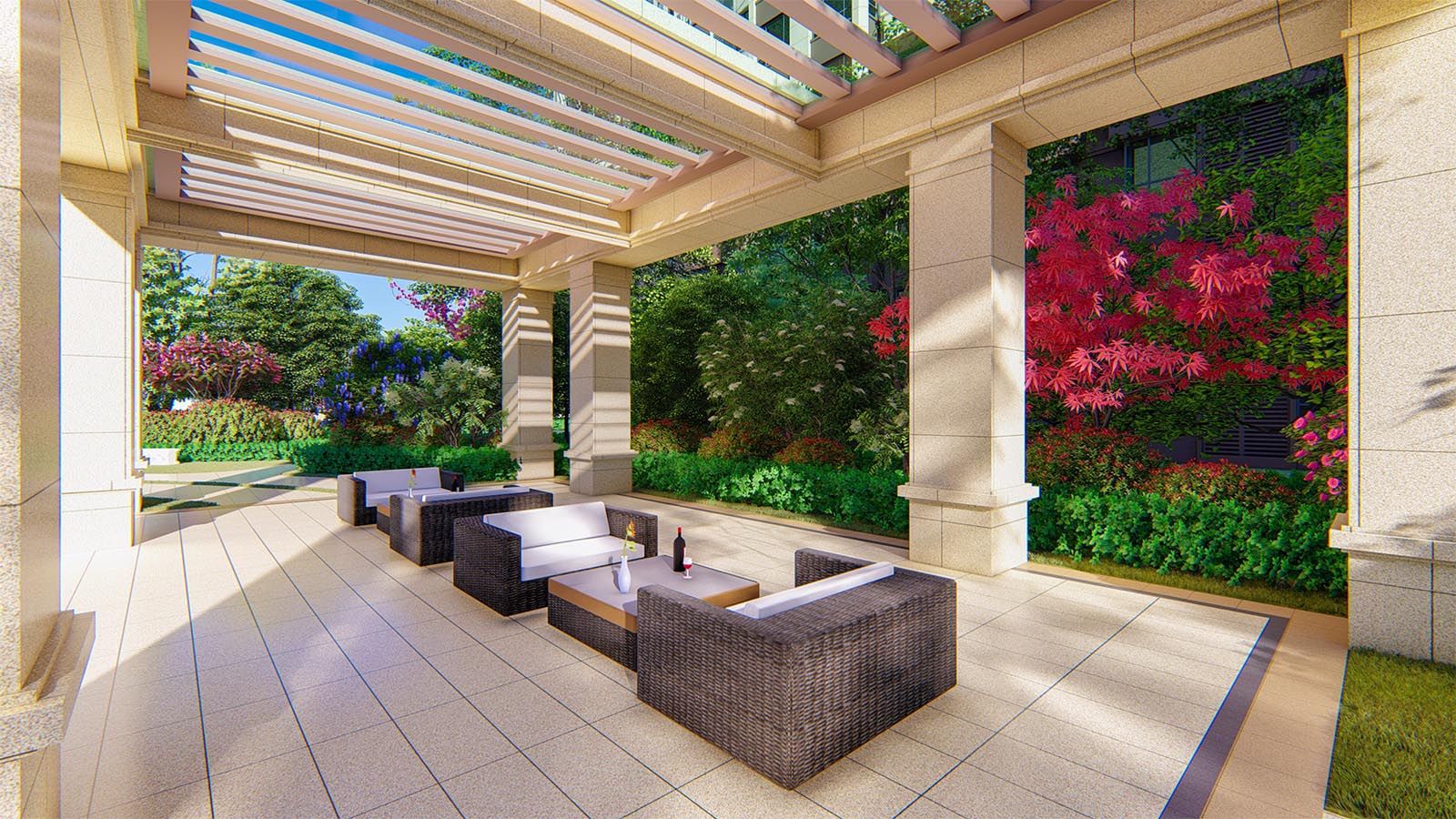 林蔭與步道結合的圍合成一片靜幽的歸家空間,漫步于林蔭之下,清風徐來微微涼, 為住戶提供宅前一片休憩的愜意空間,樹影婆娑,悠然自得。