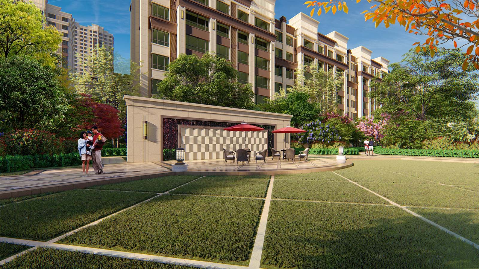 有溫度的社區,尤其注重景觀的實用性,在地塊最中心的區域,設計提煉室外景觀會客廳的概念,讓景觀不單單只是一個簡單的構架,而是為居者日用的生活場所。