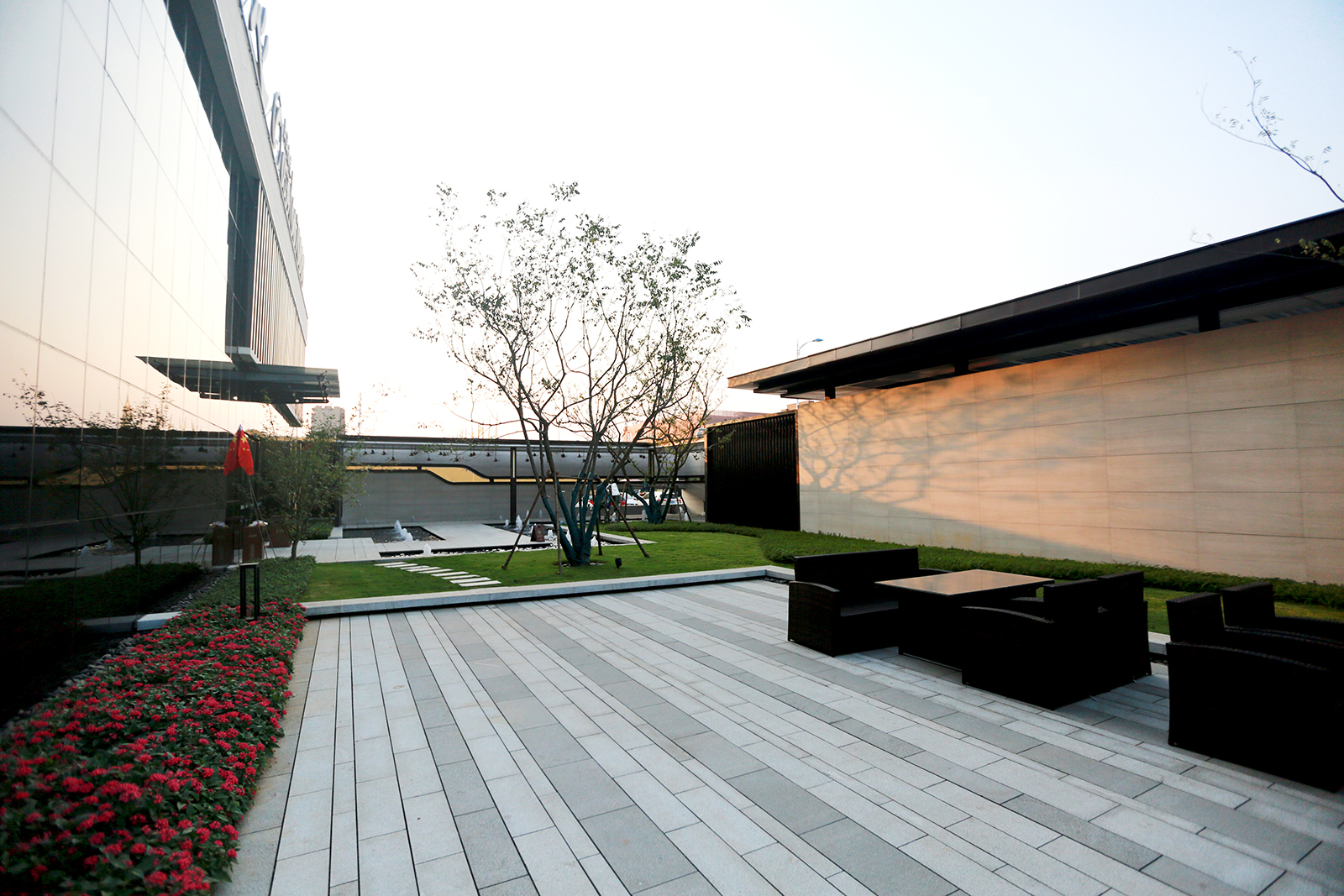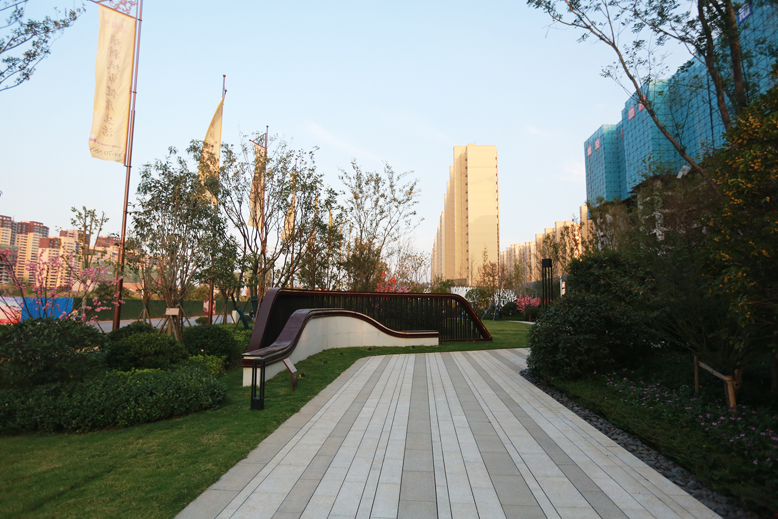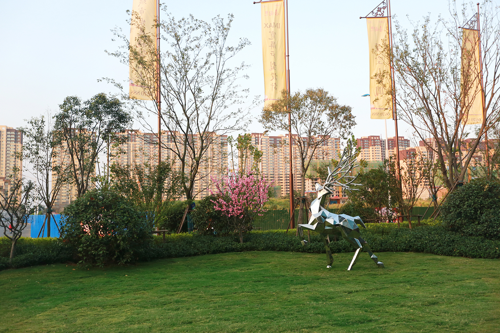 置業(yè)顧問引導(dǎo)客戶到達(dá)休閑平臺,空間開闊,綠植分布周圍,對景草階現(xiàn)代新穎,草坪上散布的藝術(shù)裝置增添景觀亮點(diǎn),為客戶創(chuàng)造心曠神怡的身心感受,品味整個示范區(qū)的優(yōu)雅品質(zhì)。