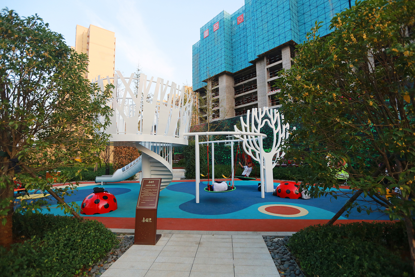 兒童樂園以親子同樂,喜鵲和鳴為意境,設(shè)置兒童體驗(yàn)熱點(diǎn),同時布置家長休閑看護(hù)區(qū)與洽談區(qū),園路旁的喬木夾道種植,豐富的綠化層次,都能增強(qiáng)客戶對項(xiàng)目品質(zhì)更加直觀的感受。