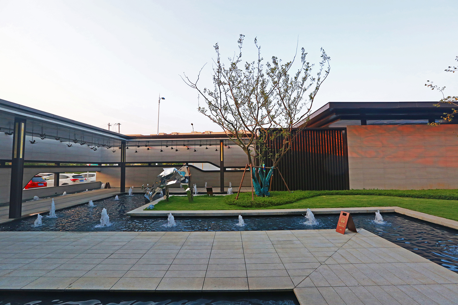 以現(xiàn)代的手法表現(xiàn)傳統(tǒng)的空間轉(zhuǎn)折關(guān)系,采用化整為零、先藏后露、引人入勝的布局,使整個空間處于多個維度之中,景觀視線不斷變化,使人流連忘返。