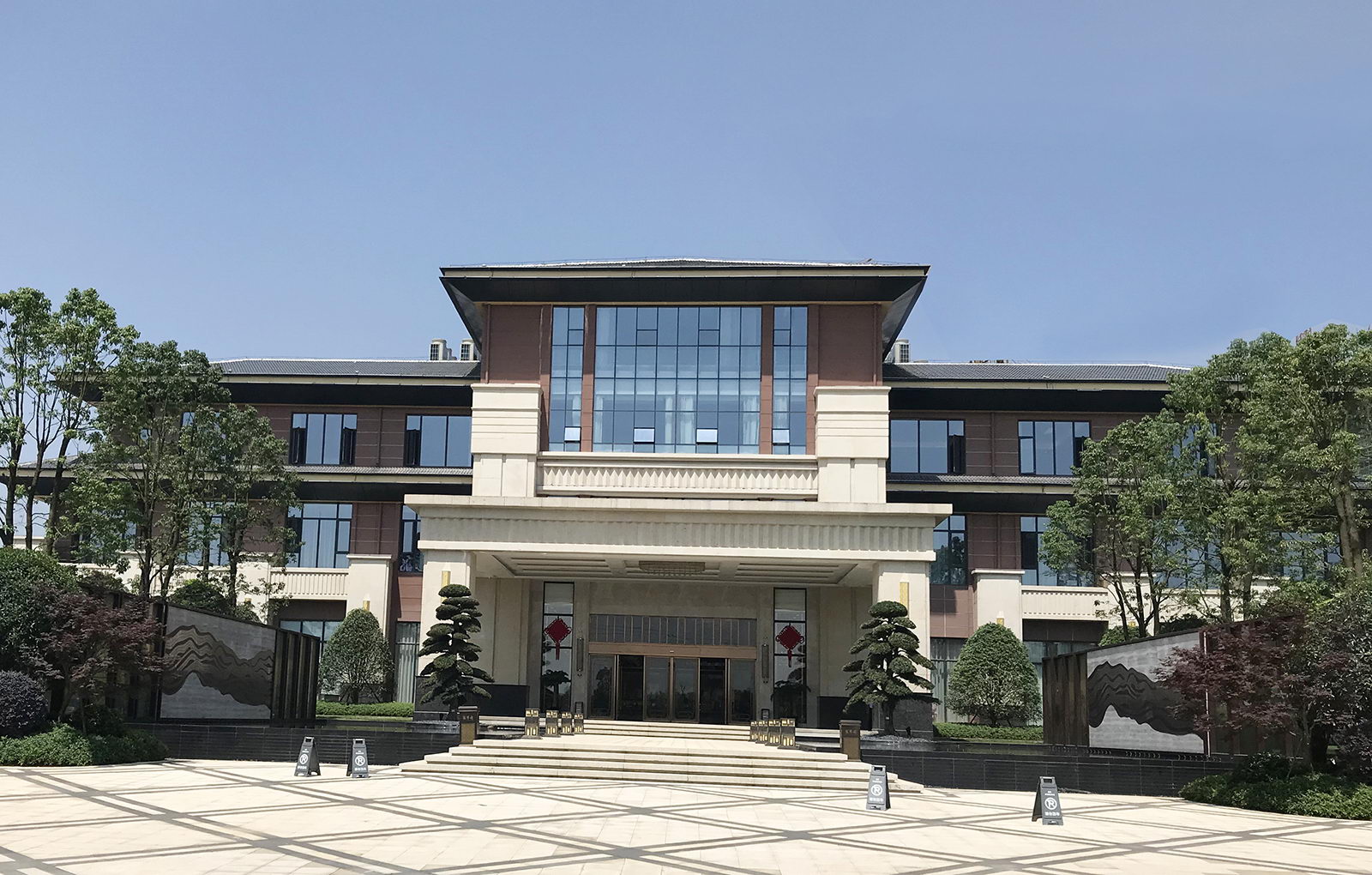 以山水雍華,東方大境為設計主題鏡面水景與絹畫景墻屏風,汲取流經(jīng)吉安贛江水脈與新干玉華山風景區(qū)山脈形制。
