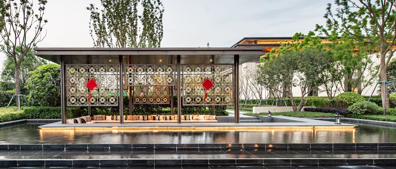 景觀延續(xù)新中式風(fēng)格,采用當(dāng)代的景觀設(shè)計(jì)語言表現(xiàn)傳統(tǒng)中國園林的精神內(nèi)涵,將現(xiàn)代元素和傳統(tǒng)元素有機(jī)的結(jié)合在一起,以現(xiàn)代人的功能需求和審美愛好來打造富有傳統(tǒng)韻味的園林景觀,讓傳統(tǒng)藝術(shù)在當(dāng)今社會得到合適體現(xiàn)。